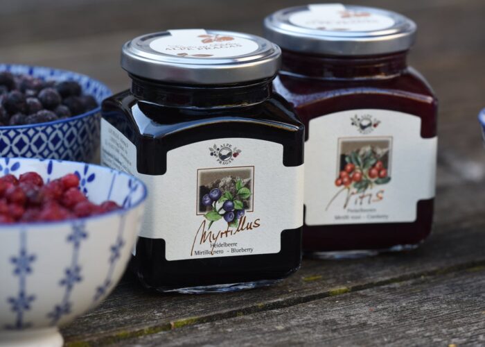 Mirtilli, lamponi, albicocche della Val Venosta, miele di rododendro.